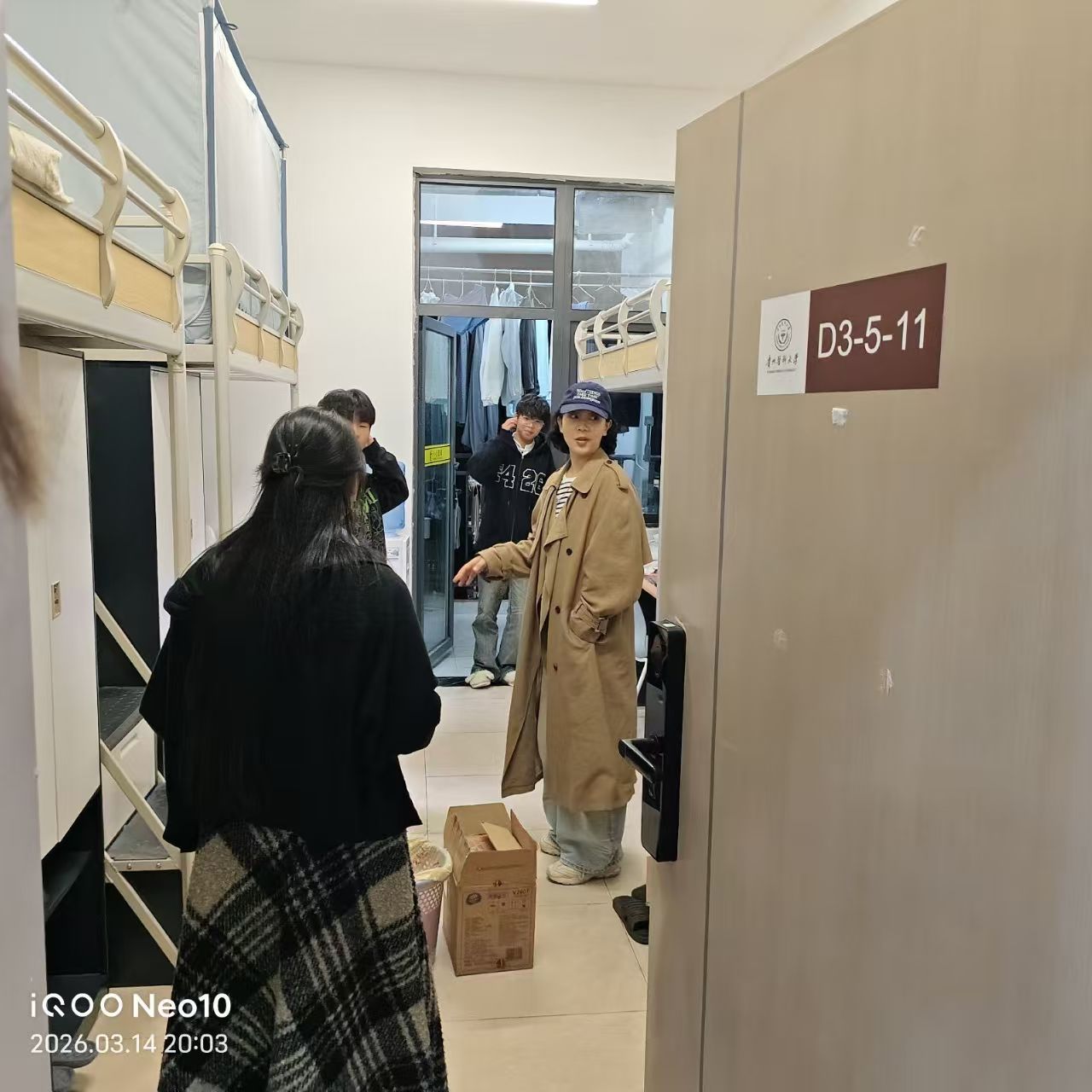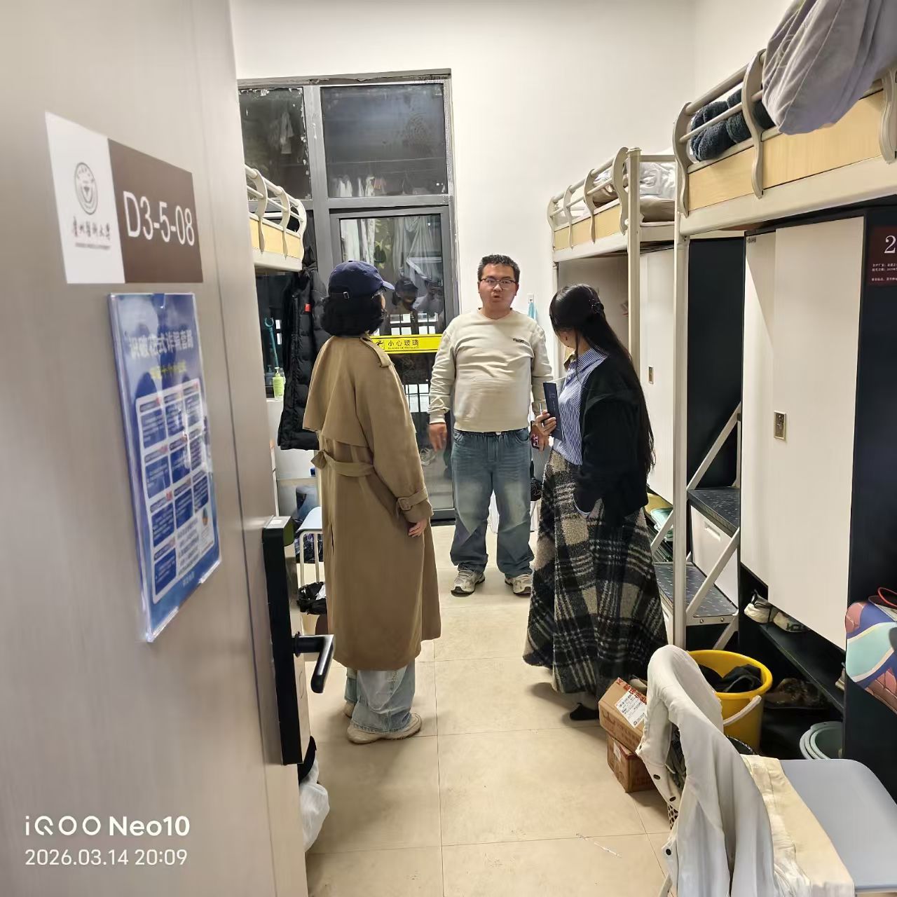 张佳佳重点查看了寝室卫生状况和用电安全,叮嘱同学们务必遵守学校公寓管理规定,杜绝违规电器,注意防火防盗,共同营造安全、整洁、和谐的住宿环境。她还提醒同学们注意春季传染病预防,保持良好作息,以健康的体魄和饱满的精神投入到新学期的学习生活中。